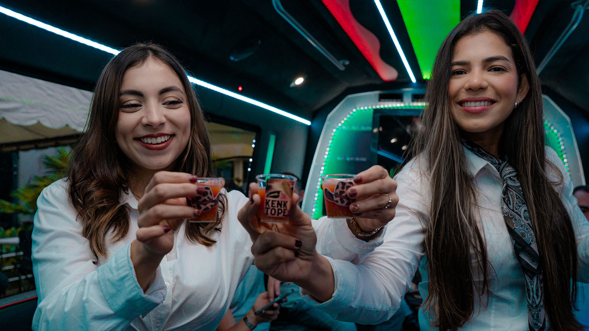 Disfruta una experiencia única con el Kenko Party Bus, una fiesta móvil diseñada para transformar cualquier trayecto en un momento inolvidable.
